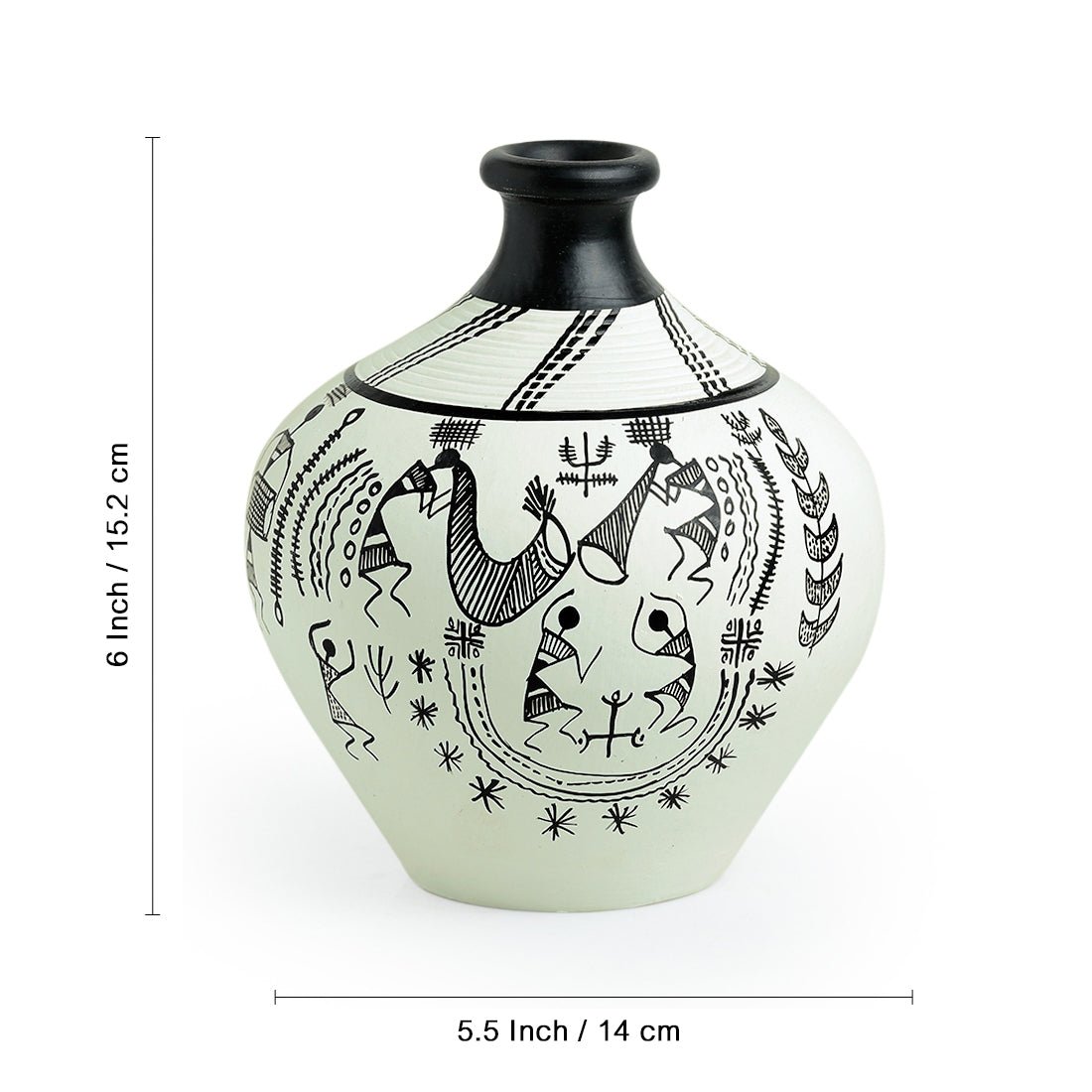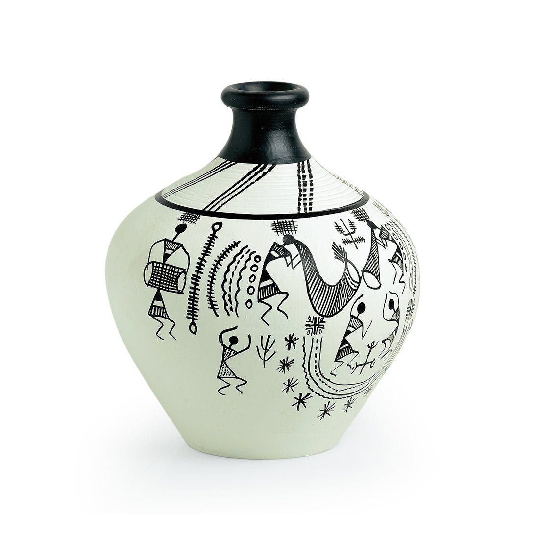 The vase is made by an awarded artisan from Haryana using good quality filtered clay. They are hand painted using acrylic colors in various art forms like warli, madhubani, gond or modern art. An assortment of shapes, designs & sizes is possible for a small batch production of 100 pieces. Existing designs are available for a minimum quantity of 24 pieces.