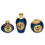 Terracotta Warli Handpainted Pots Blue Set of 3