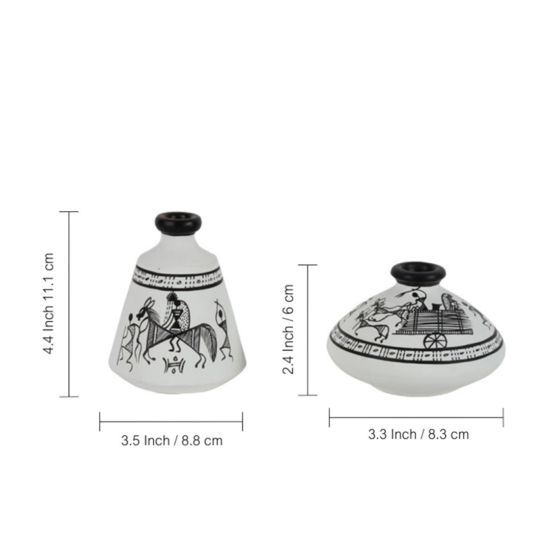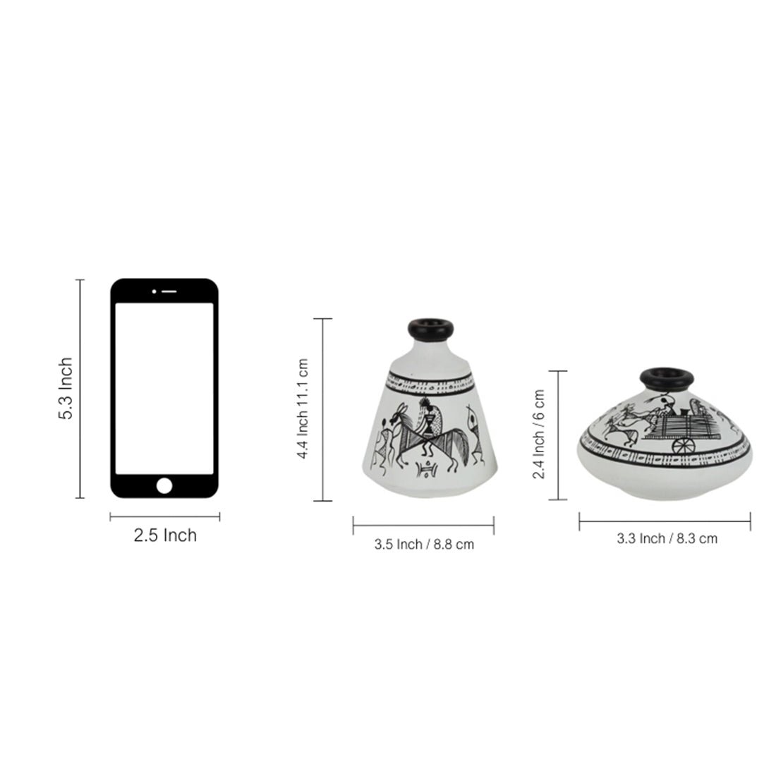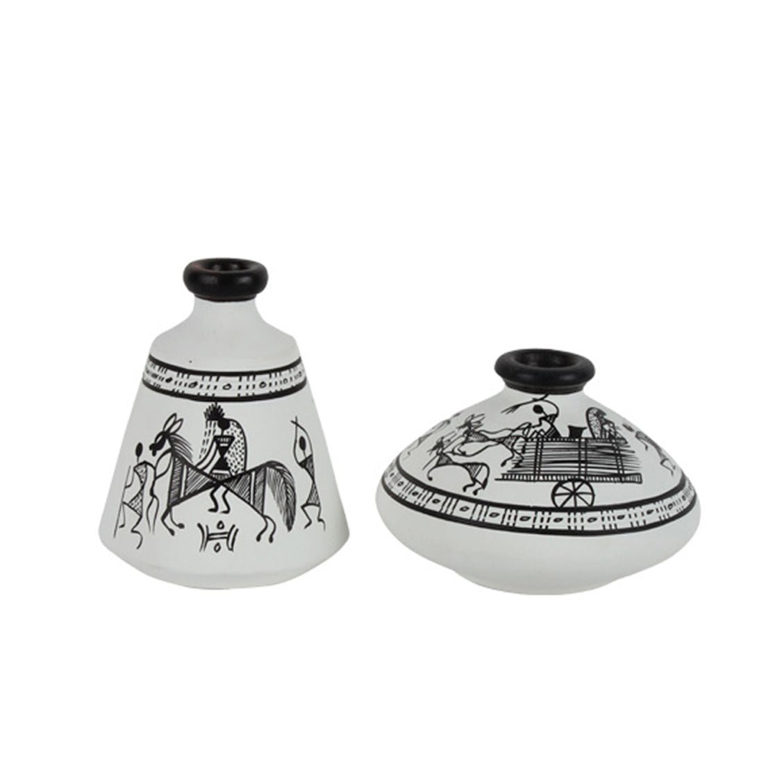 The vase is made by an awarded artisan from Haryana using good quality filtered clay. They are hand painted using acrylic colors in various art forms like warli, madhubani, gond or modern art. An assortment of shapes, designs & sizes is possible for a small batch production of 100 pieces. Existing designs are available for a minimum quantity of 24 pieces.