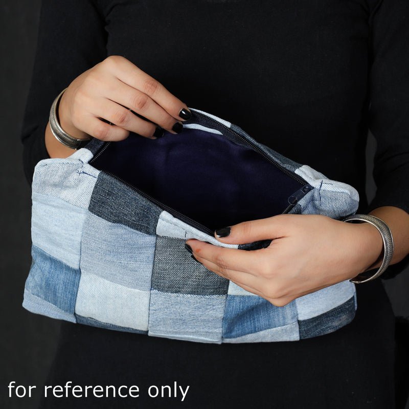 Handcrafted upcycled denim multipurpose utility pouch. It has one simple pocket outside. Ample space to keep most of your essentials. Step out in style with this denim pouch. Its color combination and comfortability makes you go effortlessly. Team it with your everyday casuals and matching footwear to complete the look. Shop at itokri.com Indiaand39;s most trusted and reviewed online store for authentic handmade products handpicked from all across India. Shipped Worldwide. Free Shipping. COD is available.