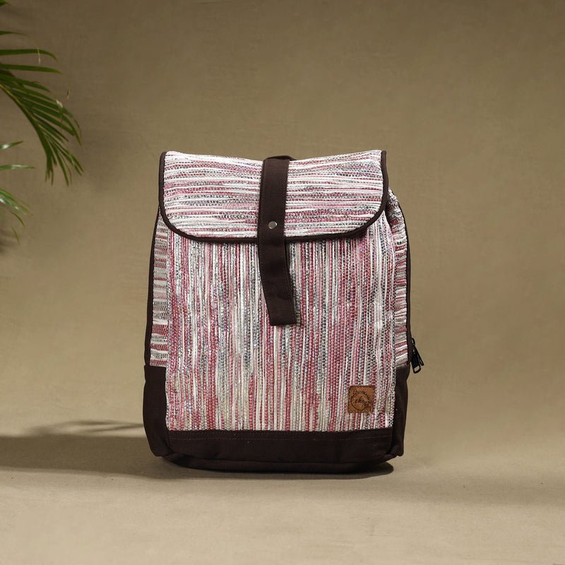 Upcycled plastic weave Handcrafted laptop backpack by Ecokaari. It has one simple and one zipper pocket inside. This laptop backpack will take you from your daily commute to weekend adventures in style. It is generously sized to hold a 15andquot; laptop, water bottle, other essentials like books, files, stationery and more making it the perfect choice to carry for everyday use. This is the answer to an effortless everyday backpack.
