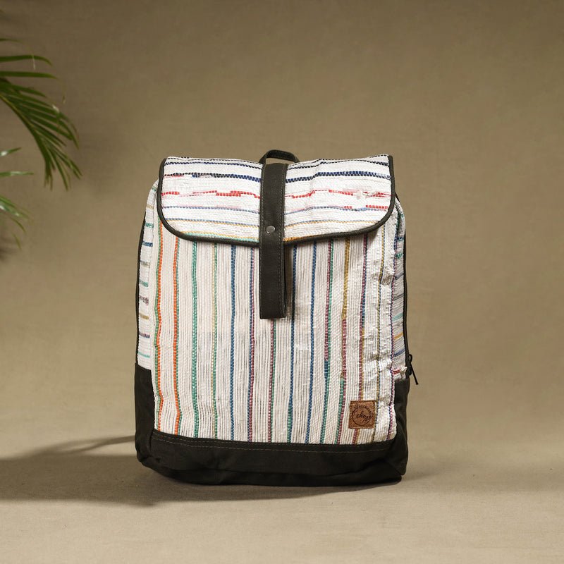 Upcycled plastic weave handcrafted laptop backpack by Ecokaari. It has one simple and one zipper pocket inside. This laptop backpack will take you from your daily commute to weekend adventures in style. It is generously sized to hold a 15andquot; laptop, water bottle, other essentials like books, files, stationery and more making it the perfect choice to carry for everyday use. This is the answer to an effortless everyday backpack.