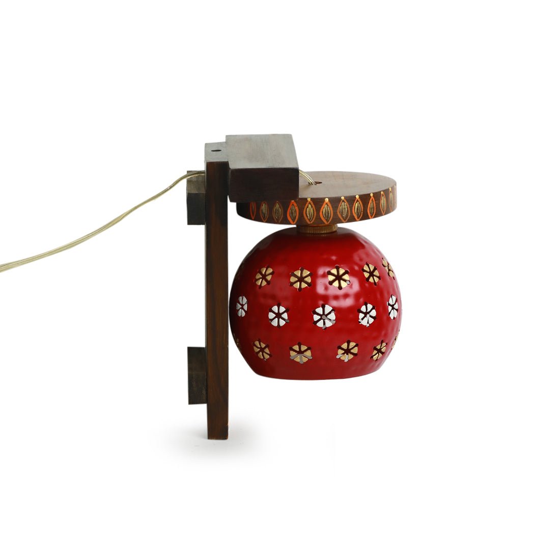 Wall Lamp Teak Wood & Metal (8 Inch Hand-Painted)