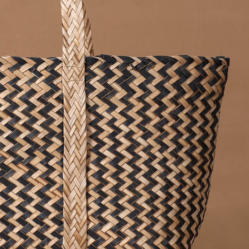 Handwoven water hyacinth reed shoulder bag intricately detailed with unique patterns made from naturally dried water hyacinth reed fiber. Water Hyacinthand#39;s products are completely natural and eco-friendly.