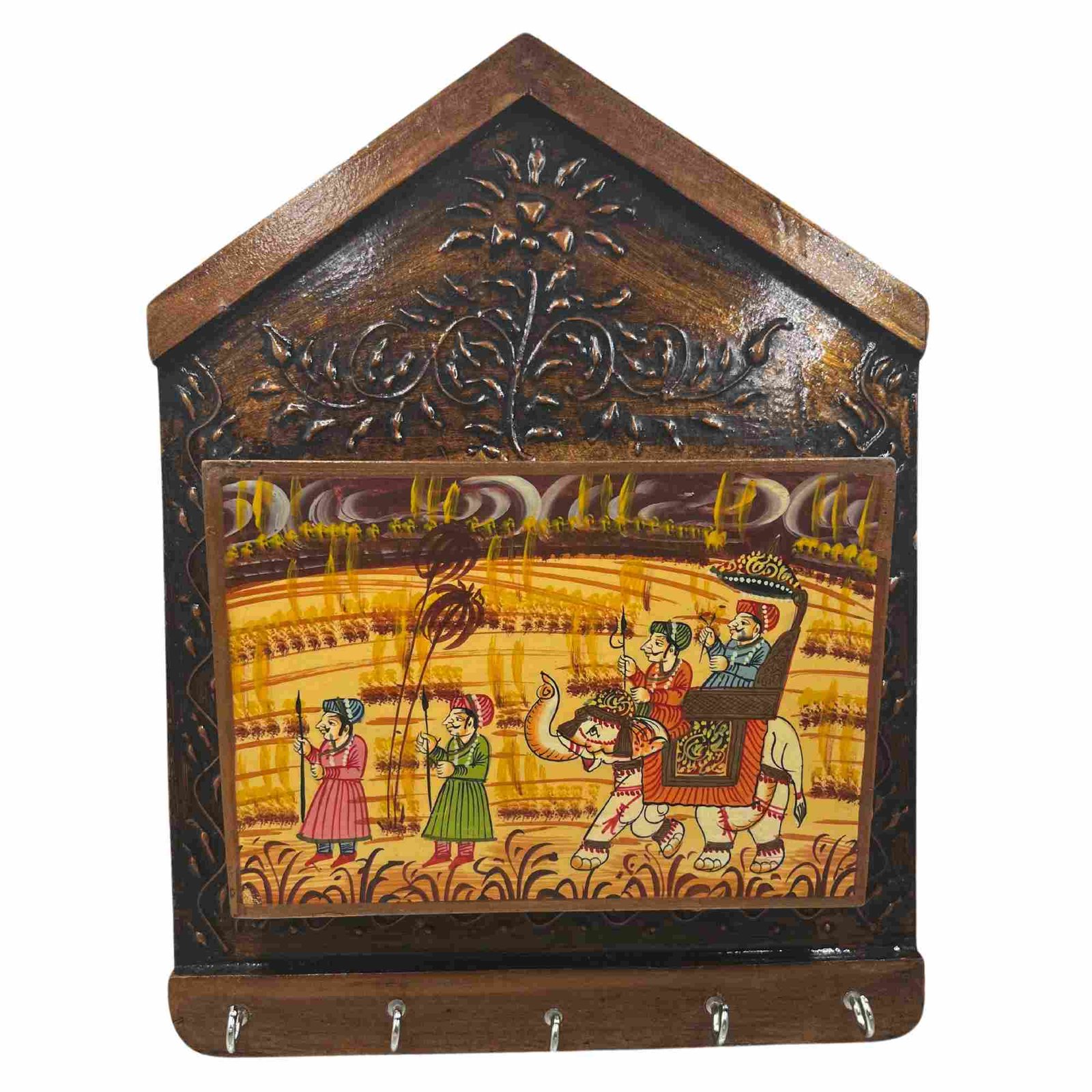 The key hook is made using seasoned local wood. Thereafter, it is cut to shape and painted in various shapes and sizes. Popular motifs are animal and plant shapes. They are further handpainted using acrylic paints and laquered for a smooth finsh. Stainless steel hooks are fixed and the product is tested for weight holding capacity. A small batch production of 50 units is possible in chosen shape and size. Material testing reports are available on request.