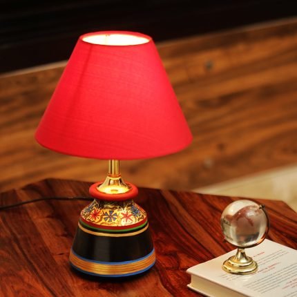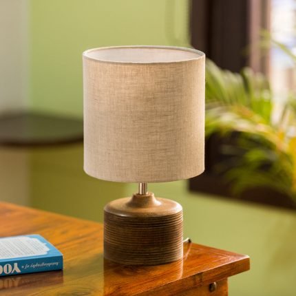 BASE: Mango Wood, SHADE: Made Of Cotton Cloth Wrapped Over Polyvinyl |