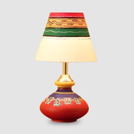 Hand-Painted Flat Round Shaped Table Lamp In Terracotta