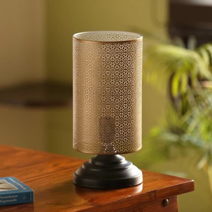Hand Etched Iron Table Lamp (12 Inch | Golden)