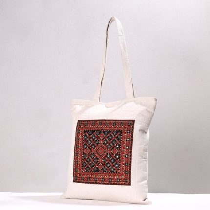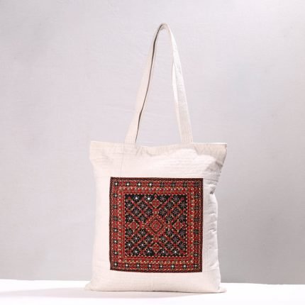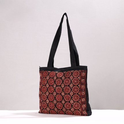 Handcrafted shoulder bag, made from woven cotton fabric and rexine from marudhara, Barmer. It has one zipper pocket outside and one zipper pocket inside. Ample space to keep most of your essentials.