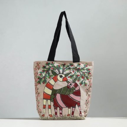 Deer – Hand-painted Jute Cotton Shoulder Bag